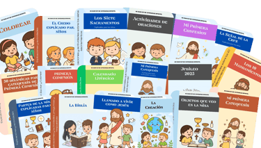 Actividades ilustradas, ejercicios, reflexiones y dibujos que ayudan a los niños a comprender la Misa, los Sacramentos y la fe católica de manera simple y alegre.
